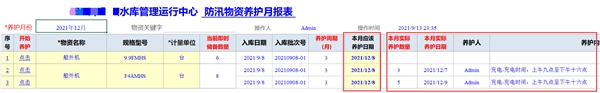 通過該表,系統(tǒng)自動獲取需要該月進行養(yǎng)護的物資清單和該月已經(jīng)養(yǎng)護的情況,便于養(yǎng)護人員進行物資養(yǎng)護工作的安排和實施。