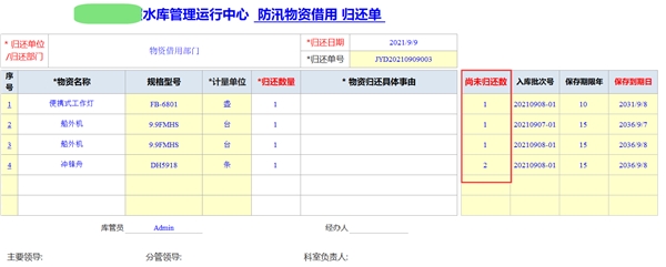 借用、歸還信息,一目了然。還可以看到尚借用在外的防汛物資的金額情況和效期情況。