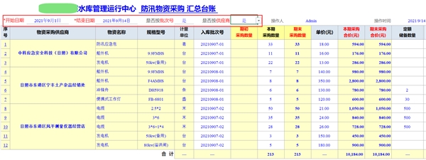 4) 物資采購匯總臺賬。
