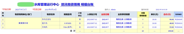 6) 物資領(lǐng)用匯總臺賬。