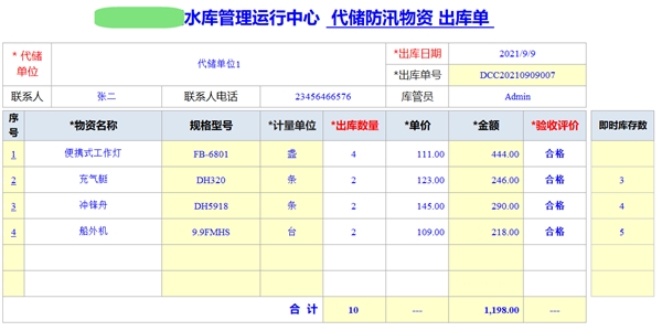 領(lǐng)用物資時,按照入庫批次和對應(yīng)的防汛物資進行列表選擇,可以看到該批次該物資的當(dāng)前即時庫存數(shù)量,系統(tǒng)自動控制,不允許負庫存領(lǐng)用出庫。 領(lǐng)用出庫單可以打印出來,相關(guān)人員簽字存檔。