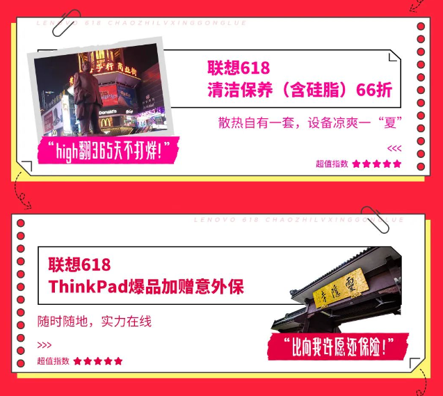 減價不減服務,618期間,聯(lián)想服務保障再次升級。Lenovo Care 9款產(chǎn)品限時6折,打造7*24小時的安全防護。聯(lián)想尊享版意外保買一年保兩年,為消費者提供不限次數(shù)的免費維修服務。聯(lián)想旗下品牌電腦可以在來酷直營門店進行免費檢測調(diào)優(yōu),以及配置升級免費加裝。