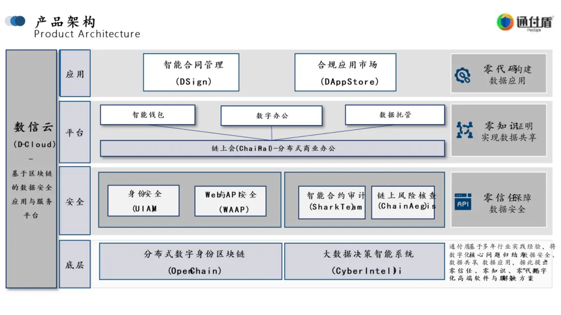 數(shù)信云4.0基于通付盾多年打造的分布式數(shù)字身份區(qū)塊鏈(OpenChain)及大數(shù)據(jù)決策智能(CyberIntelli)引擎,升級后的數(shù)信云4.0為開發(fā)者帶來三大全新數(shù)字化安全解決方案: