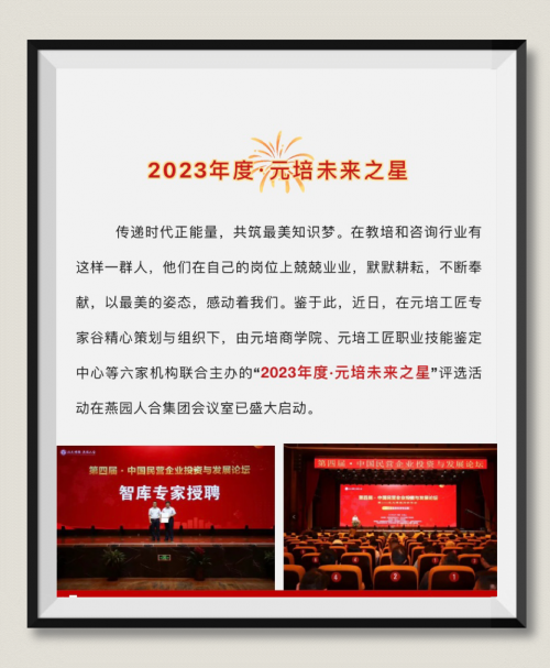 為表彰先進(jìn)、樹立楷模,激勵(lì)更多的優(yōu)秀智庫專家持續(xù)推動(dòng)產(chǎn)學(xué)研深度融合發(fā)展,激發(fā)創(chuàng)新活力;充分發(fā)揮自身優(yōu)勢(shì),在各自領(lǐng)域持續(xù)發(fā)力,助推企業(yè)和產(chǎn)業(yè)高質(zhì)量發(fā)展,故此,由元培工匠專家谷牽頭,元培商學(xué)院、元培工匠職業(yè)技能鑒定中心等六大機(jī)構(gòu)主辦的“2023年度元培未來之星·優(yōu)秀專家”評(píng)選活動(dòng),在燕園人合集團(tuán)辦公室,已盛大啟動(dòng),吁請(qǐng)“產(chǎn)學(xué)研訓(xùn)創(chuàng)”領(lǐng)域各位智庫專家踴躍參加。