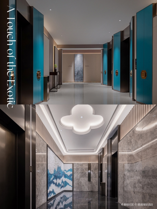 酒店整體風(fēng)格在現(xiàn)代的基礎(chǔ)上各處點(diǎn)綴古典元素,藝術(shù)性的關(guān)系處理或藝術(shù)品的陳列,理性的空間產(chǎn)生視覺上的沖突,賦予空間干凈溫和的靈魂。