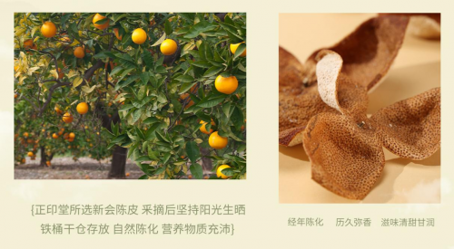 正印堂旗下的陳皮調(diào)味茶,均精心選擇正宗的 9 年新會陳皮,采摘后堅(jiān)持陽光生曬,并通過鐵桶干倉的特殊儲存方式進(jìn)行自然陳化。這個過程不僅讓陳皮的營養(yǎng)物質(zhì)充沛 ,更賦予了茶葉獨(dú)特的陳化韻味。