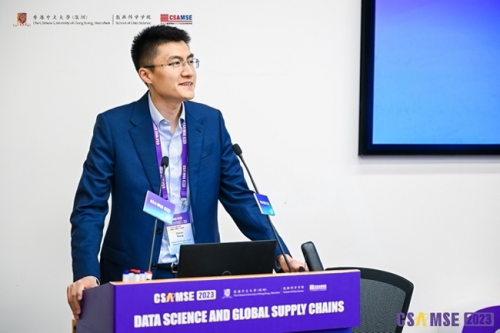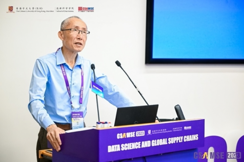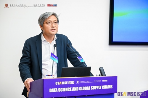 開幕式上,港中大(深圳)協(xié)理副校長蔡小強教授首先作開場致辭。蔡校長代表大學向現(xiàn)場的來賓表示熱烈的歡迎,并預祝CSAMSE 2023圓滿成功。蔡校長也向大家介紹了港中大(深圳)的發(fā)展。大學雖成立僅9年,但一直受到深圳和香港政 府的大力支持。國際化是我們的優(yōu)勢,多樣化是港中大(深圳)突出的特色之一,我們的教授來自世界各地。此次大會的舉辦,也是為促進全球各界的交流。數(shù)據(jù)科學這一研究領(lǐng)域在過去十年內(nèi)蓬勃發(fā)展,并成為供應鏈管理核心的驅(qū)動力。但全球供應鏈由于疫情及地緣政治等原因變的越來越不確定,而此次大會就是為這一領(lǐng)域提供平臺讓大家共話此議題并加強大家的合作。