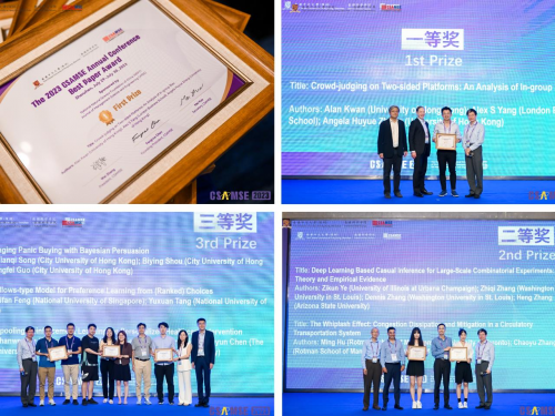 CSAMSE 2023大會的主題是數(shù)據(jù)科學與全球供應鏈。本次會議旨在討論數(shù)據(jù)科學在未來經(jīng)濟發(fā)展中能發(fā)揮的更大作用,并幫助建立更加柔性、魯棒、高效的國際供應鏈,推動我國及全球的經(jīng)濟發(fā)展。本次大會議程包括大會主旨演講、圓桌論壇、青年學者論壇、女性學者午餐會等模塊,大會上也評選出了“最 佳論文獎”、“管理科學實踐獎”等獎項。會后大會還組織了參會人員到騰訊公司進行企業(yè)參訪,增強學界與業(yè)界的交流融合。
