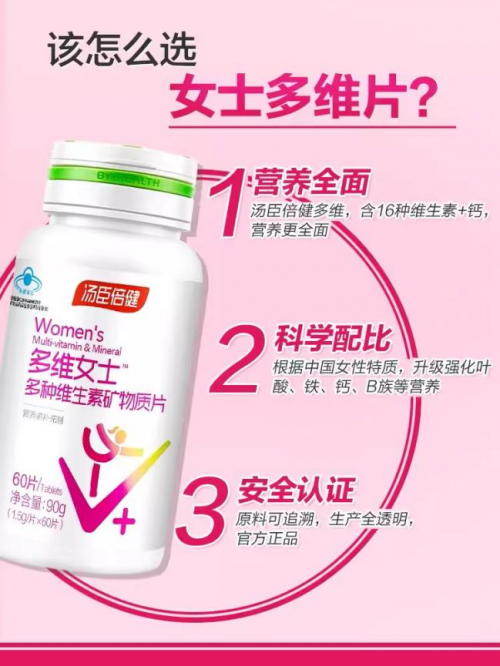以湯臣倍健維女士為例,嚴格遵照《中國居民膳食營養(yǎng)推薦攝入量》RNls標準,篩選16種女性體內更容易缺乏的營養(yǎng)元素,包括維生素D、維生素E、維生素C、維生素B族、維生素A、鈣鐵鋅硒、葉酸、泛酸等多種維生素、礦物質,每天1次,每次1片即可為女性朋友科學補充身體所需營養(yǎng)。需要補充的是,根據(jù)我國人民日常飲食習慣以及烹飪習慣(加碘鹽)的特性,湯臣倍健多種維生素不加碘銅,有效地避免了營養(yǎng)元素攝入過量,為身體造成不必要的健康負擔的問題。