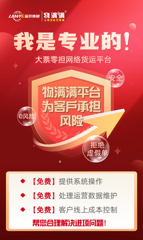 藍(lán)頁集團(tuán)·物滿滿提供的網(wǎng)絡(luò)貨運(yùn)服務(wù)平臺,擁有500億資產(chǎn)規(guī)模的國有背景,國家5A級網(wǎng)貨資質(zhì)平臺,為物流行業(yè)提供一站式智慧物流解決方案,扶持企業(yè)降本增效。選擇我們,助力您的物流事業(yè)更進(jìn)一步!