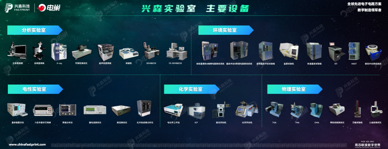 興森科技旗下的興森實(shí)驗(yàn)室成立于2010年,擁有各類檢測(cè)試驗(yàn)設(shè)備100多臺(tái),可開(kāi)展電路板檢測(cè)分析、電子元器件檢測(cè)分析、可靠性試驗(yàn)。
