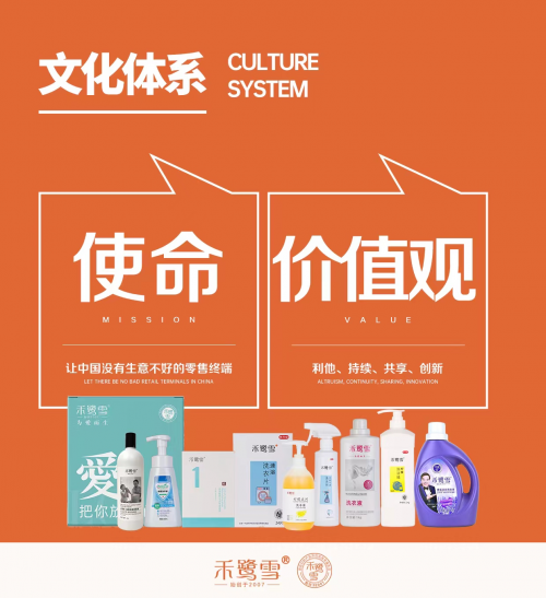 禾鷺雪的愿景是以渠道、用戶為中心,創(chuàng)造更美好的商業(yè)新世界,讓人們的生活更美好。在這個(gè)愿景的引領(lǐng)下,禾鷺雪品牌致力于為用戶提供健康環(huán)保的日化清潔產(chǎn)品,致力于賦能三千萬(wàn)終端,服務(wù)中國(guó)一億家庭,讓他們?cè)诩揖由钪邢硎艿礁嗟男腋8泻褪孢m度。