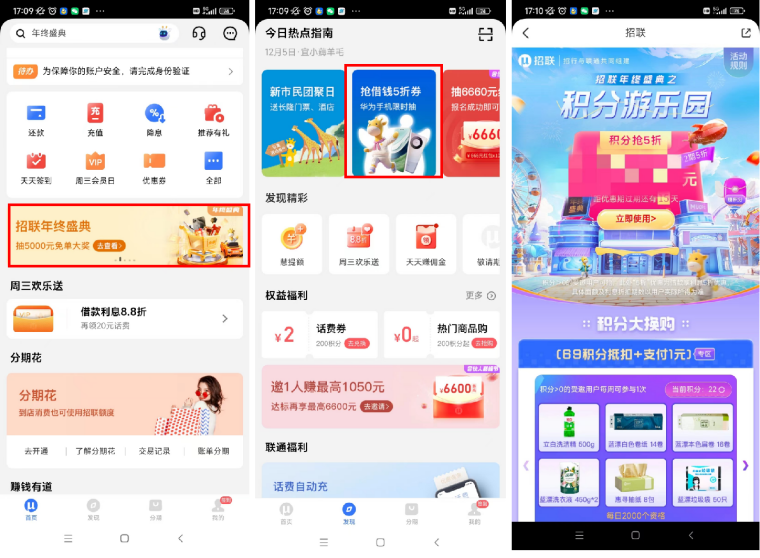 今年以來(lái),經(jīng)濟(jì)穩(wěn)中向好發(fā)展,消費(fèi)需求正加快釋放,且不斷向個(gè)性化、多樣化、品質(zhì)化升級(jí)。在這樣的背景下,招聯(lián)緊跟消費(fèi)市場(chǎng)的變化,以創(chuàng)新的思維和服務(wù)模式,推出年度重磅優(yōu)惠活動(dòng)——招聯(lián)年終盛典。該活動(dòng)為消費(fèi)者提供積分搶5折借款券、積分兌好禮,3C數(shù)碼等大牌好物12期免息分期、以及免單抽最 高5000元大獎(jiǎng)等優(yōu)惠,切實(shí)降低消費(fèi)者借貸和消費(fèi)成本,為進(jìn)一步提振消費(fèi)、擴(kuò)大內(nèi)需、釋放消費(fèi)潛力注入了新的活力。
