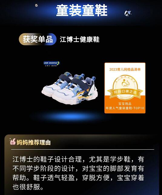 近日,2023年度育兒網(wǎng)橙品清單媽媽口碑之選榜單出爐,江博士學(xué)步鞋再次入選童裝童鞋榜單前十。作為母嬰行業(yè)首個(gè)奉行“無(wú)水 軍、無(wú)干預(yù)、真實(shí)用戶(hù)、真實(shí)口碑”的年度母嬰產(chǎn)品評(píng)選,育兒網(wǎng)橙品清單歷經(jīng)多年的驗(yàn)證,已逐漸成為萬(wàn)千媽媽的好物標(biāo)桿。而江博士學(xué)步鞋連續(xù)多年入選,這無(wú)疑代表其實(shí)力得到了專(zhuān)家與媽媽們的權(quán) 威認(rèn)證。