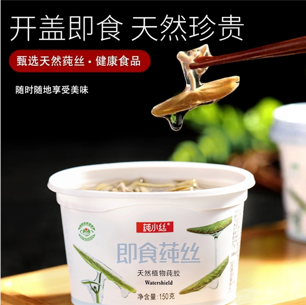 “莼小絲”食品口感圓融、鮮美嫩滑,富含植物多糖、膠原蛋白、氨基酸、有機(jī)鋅、鈣磷鐵等多種營養(yǎng)物質(zhì),對人體有益。