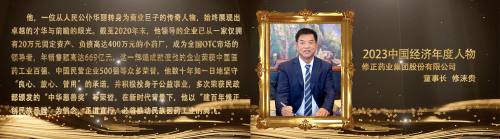 修正藥業(yè)集團(tuán)董事長(zhǎng)修淶貴榮膺“2023中國(guó)經(jīng)濟(jì)年度人物”