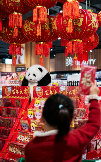 現(xiàn)在來華潤(rùn)萬家龍華壹方天地店,你不僅能感受到最濃烈的年味氛圍,還能讓“花花”玩偶陪你逛超市,收獲來自國(guó)寶熊貓的“花”式祝福。