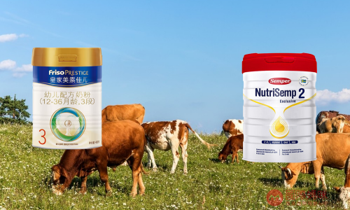 森寶奶源來(lái)自歐洲,鮮奶生產(chǎn)而成;皇家美素佳兒奶源來(lái)自荷蘭,第 一配料為脫脂牛奶。
