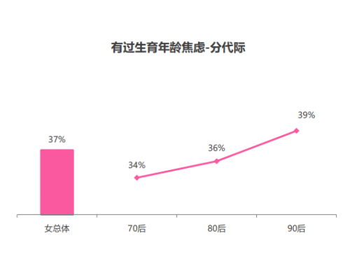 每到年關(guān),婚戀觀念相對保守的90后父母,就扛起了催生催孕的“大旗”。雖然大家不愿意承認(rèn)一個嚴(yán)峻的事實,但數(shù)據(jù)卻不斷告訴大家一個事情,那就是“留給90后的時間不多了”。除了之前提到“婚戀年齡焦慮”之外,“生育年齡焦慮”人群中,90后女性也是“最焦慮”人群?!秷蟾妗凤@示:整體女性被訪者中,近四成有過生育年齡焦慮;其中,生育年齡焦慮整體呈明顯上升趨勢,39%的90后女性都有過生育年齡焦慮,且焦慮加深速度不斷加快,社會整體對于“生育年齡焦慮”愈發(fā)嚴(yán)重。