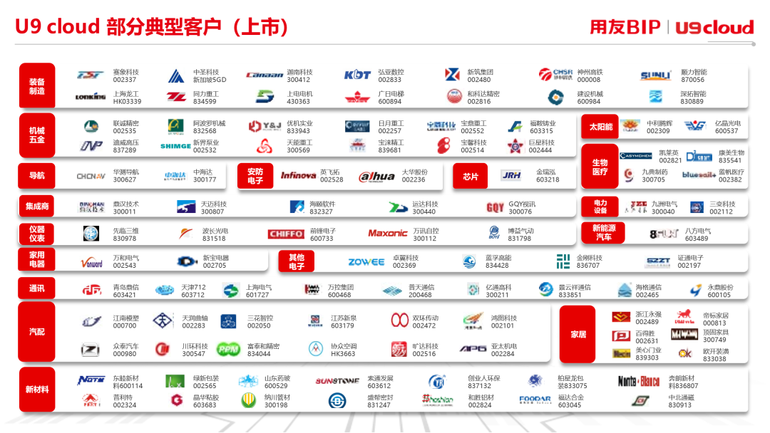 從企業(yè)數(shù)智化轉型的實踐來看,U9 cloud不但能夠為制造企業(yè)的IPO保駕護航,而且在裝備制造、機械、電子、汽配和新材料等許多行業(yè)也有著大量上市公司的最 佳實踐。