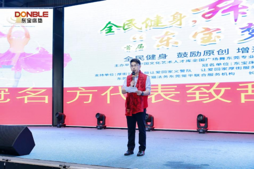 開(kāi)幕儀式上,陳祖良先生代表東寶床墊發(fā)表了熱情洋溢的講話(huà):首先感謝大家的支持與參與!幫助別人,快樂(lè)自己,利人達(dá)己是東寶,國(guó)強(qiáng)家才盛,幸福更美好。正是在這樣的東寶精神引導(dǎo)下,孕育了本次《東寶夢(mèng)》廣場(chǎng)舞的初衷和想法——全民健身,鼓勵(lì)原創(chuàng),增進(jìn)友誼,助力公益。