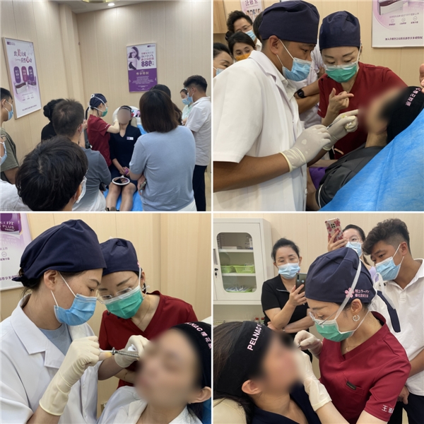 在實(shí)操交流環(huán)節(jié)中,以王珊珊院長(zhǎng)為導(dǎo)師,實(shí)操指導(dǎo)3位醫(yī)護(hù)人員,對(duì)于求美者全面部術(shù)前評(píng)估、設(shè)計(jì)及治療標(biāo)準(zhǔn);現(xiàn)場(chǎng)進(jìn)行點(diǎn)位、劑量等方面的注射操作指導(dǎo),專(zhuān)業(yè)細(xì)致講解注射要點(diǎn)。從點(diǎn)位選擇、進(jìn)針?lè)绞?、推注揉捏的感受都逐一進(jìn)行分享,讓在場(chǎng)的醫(yī)護(hù)人員輕松易懂地了解到櫻花膠原支架的產(chǎn)品特點(diǎn)及臨床注射技巧。