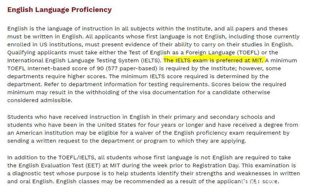 其中既包含那些top級的私立名校,例如以哈佛、耶魯為代表的常青藤盟校,也有越來越多偏愛雅思的院校。像MIT(麻省理工學(xué)院),其部分專業(yè)甚至表示不認(rèn)托福成績,只接受雅思成績。