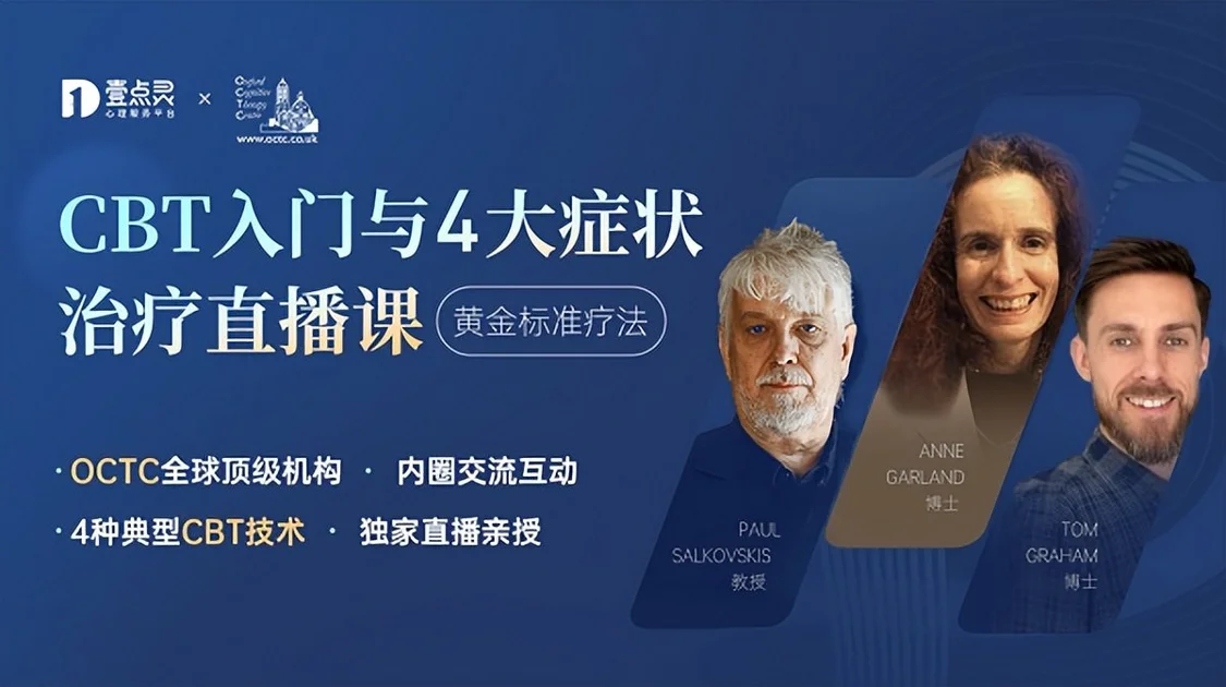 據(jù)悉,英國(guó)牛津認(rèn)知治療中心(Oxford Cognitive Therapy Centre, OCTC)與英國(guó)牛津大學(xué)繼續(xù)教育學(xué)院合作進(jìn)行教育和培訓(xùn)工作,在全世界范圍內(nèi)培養(yǎng)從事認(rèn)知-行為心理治療(CBT)工作的中高端人才,現(xiàn)已成為國(guó)際公認(rèn)的卓越機(jī)構(gòu)。本次直播課,壹點(diǎn)靈特邀牛津認(rèn)知治療中心專業(yè)導(dǎo)師團(tuán)直播親授。