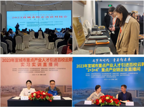 活動當天還舉辦了宣城市校企洽談對接會、重點產業(yè)人才引進百校云聘會,并分成7組前往縣(市、區(qū))實地調研重點企業(yè)和“三實”教育基地等。校企洽談對接會主要圍繞人才引育、項目合作、成果轉化等方面,現(xiàn)場組織45家企業(yè)與30所高校進行現(xiàn)場對接洽談。面向長三角高校畢業(yè)生舉辦重點產業(yè)人才引進百校云聘會,按照我市“2+3+4”產業(yè)和實習實訓、社會實踐分類,同步開設6個直播間,由企業(yè)進行直播帶崗,提供各類人才崗位1019個,線上35.83萬人次參與。