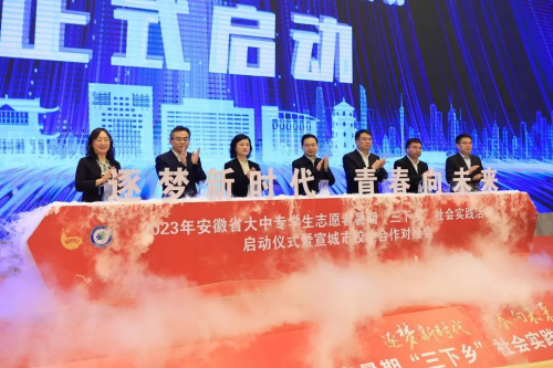 為深入貫徹落實關于做好新時代人才工作的重要思想,進一步深化校地合作,集聚和培育更多青年人才,4月24日,2023年安徽省大中專學生志愿者暑期“三下鄉(xiāng)”社會實踐活動啟動儀式暨宣城市校地合作對接會在宣城舉行。宣城市委書 記李中,團省委書 記陳明生,團省委副書 記竇賢琨,省文明辦副主任王芳,宣城市委常委、組織部長朱立軍,宣城市政 府副市 長汪侃,省委宣傳部、省教育廳等有關部門領 導出席活動。省內高校團委、就業(yè)部門負責同志,長三角高校教師、學生代表,宣城市市直、各縣市區(qū)相關單位負責人,共370余人現(xiàn)場參加會議。活動同步進行了網絡直播,觀看人次超過330萬。