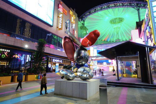 公共藝術(shù)作品的落地,為華熙LIVE·528商圈增添了濃厚的藝術(shù)魅力,吸引絡(luò)繹不絕的年輕人前來(lái)打卡,人們?cè)诖讼嗑劢涣?、情感共?在成都體驗(yàn)真實(shí)的人間煙火氣。同時(shí),藝術(shù)作品的公共性得以彰顯,在手機(jī)和相機(jī)屏幕的一閃一滅間,它又一次突破時(shí)間與空間的限制,藝術(shù)大道儼然成為成都的新文化地標(biāo)。