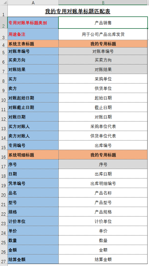 --我的專用對(duì)賬單標(biāo)題匹配表