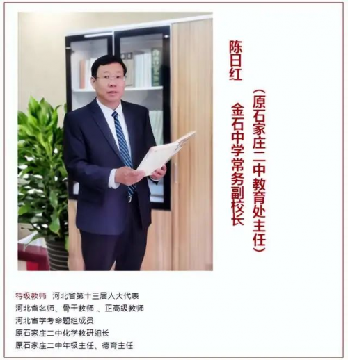 石家莊金石中學(xué)書 記光樹平為原二中南校區(qū)副校長,該校常務(wù)副校長為原二中教育處主任陳日紅,及石家莊首批特級教師工作室代表為原石家莊二中校長助理劉宗順,所教班級年均清北人數(shù)10人以上,學(xué)校復(fù)讀部每一位老師都有多年帶高三畢業(yè)班經(jīng)驗,管理團(tuán)隊主要領(lǐng) 導(dǎo)的平均管理年限27年,學(xué)科帶頭人或備課組長平均教齡20年。特級教師3人,高級教師占比25%,985、211、雙一流院校及研究生占比40%以上。