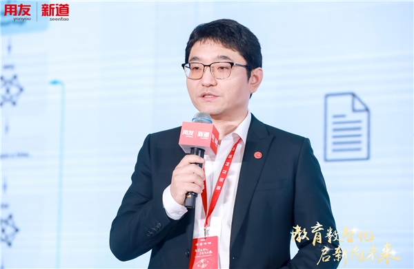 西安電子科技大學(xué)副校長(zhǎng)王泉以“‘六新’推動(dòng)高等教育的數(shù)字化轉(zhuǎn)型”為題進(jìn)行分享。他表示,信息技術(shù)發(fā)展為教育數(shù)字化轉(zhuǎn)型提供了技術(shù)支撐。西安電子科技大學(xué)建設(shè)人工智能+教育標(biāo)桿校的優(yōu)勢(shì),以數(shù)字化轉(zhuǎn)型重構(gòu)人才培養(yǎng)的體系,以“六新”建設(shè)推動(dòng)教育數(shù)字化轉(zhuǎn)型。隨后,他詳細(xì)介紹了處處能學(xué)、時(shí)時(shí)可學(xué)的育人“新環(huán)境”,類型重構(gòu)和供給方式重構(gòu)的“新資源”,基于信息技術(shù)和智能技術(shù)的“新教學(xué)”,大數(shù)據(jù)支撐下的教育教學(xué)“新評(píng)價(jià)”,人機(jī)結(jié)合、人技結(jié)合的能力“新培訓(xùn)”,基于數(shù)據(jù)驅(qū)動(dòng)的高校智治體系“新治理”的“六新”內(nèi)容和舉措。王泉表示,西安電子科技大學(xué)與新道科技進(jìn)行了一系列合作,未來(lái)也期待雙方能繼續(xù)深化產(chǎn)學(xué)研合作,推動(dòng)高等教育發(fā)展。