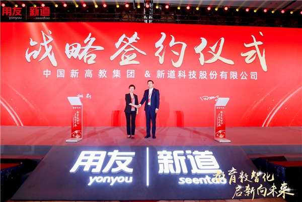 為深化產(chǎn)教融合,服務(wù)構(gòu)建高質(zhì)量教育體系,推動(dòng)教育創(chuàng)新發(fā)展。新道科技與河北省高等教育學(xué)會(huì)舉行戰(zhàn)略簽約儀式。河北省教育廳一級(jí)巡視員、河北省高教學(xué)會(huì)會(huì)長(zhǎng)王廷山與新道科技股份有限公司董事長(zhǎng)兼總裁陳強(qiáng)兵上臺(tái)簽訂戰(zhàn)略合作協(xié)議。隨后,新道科技和中國(guó)新高教集團(tuán)舉行戰(zhàn)略簽約儀式,中國(guó)新高教集團(tuán)學(xué)生與企業(yè)服務(wù)部總經(jīng)理姚莉與新道科技股份有限公司副總裁田鵬上臺(tái)簽訂戰(zhàn)略合作協(xié)議。