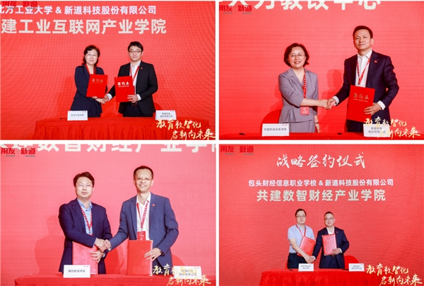 同時(shí),為深化校企合作,打造產(chǎn)教融合共同體。會(huì)議期間,新道科技與21所院校舉行校企合作戰(zhàn)略簽約儀式。