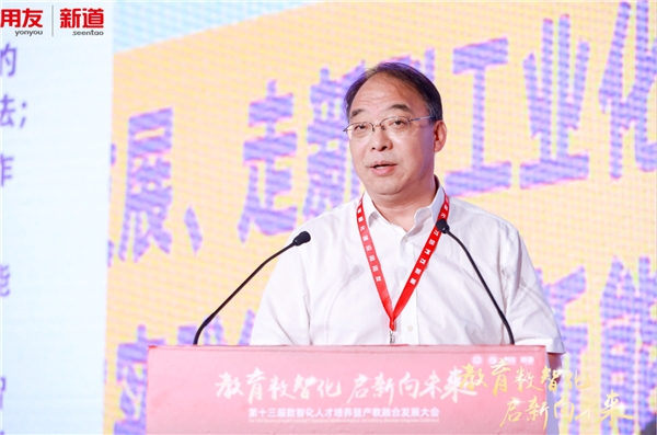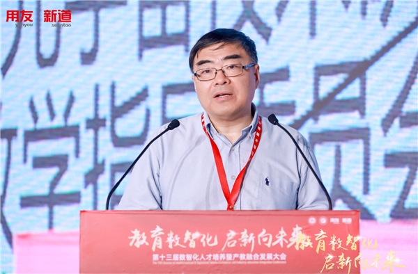 教育部高等教育司人文社科教育處處長(zhǎng)張慶國(guó)在致辭中表示,近年來(lái),教育部通過(guò)高起點(diǎn)建設(shè)國(guó)家高等教育智慧教育平臺(tái),高標(biāo)準(zhǔn)加強(qiáng)在線課程“建用學(xué)管”,高水平開(kāi)展高等教育數(shù)字化理論研究,高層次推動(dòng)慕課與在線教育國(guó)際交流與合作等舉措推動(dòng)高等教育數(shù)字化工作。他指出,推進(jìn)教育數(shù)字化,離不開(kāi)校企雙方協(xié)同合作。在這個(gè)過(guò)程中,各優(yōu)秀院校、各行業(yè)頭部企業(yè),充分發(fā)揮了各自優(yōu)勢(shì),為推進(jìn)教育數(shù)字化和產(chǎn)教融合的發(fā)展發(fā)揮了積極作用。張慶國(guó)表示,希望本次大會(huì)各位專家的分享和探討,能為高等教育的高質(zhì)量發(fā)展提供更多思路和借鑒,培養(yǎng)更多符合時(shí)代和社會(huì)發(fā)展需求的數(shù)智化人才。