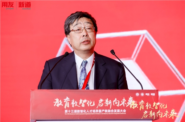 中國(guó)高等教育學(xué)會(huì)副會(huì)長(zhǎng)、秘書長(zhǎng)姜恩來(lái)在致辭中提出,在數(shù)字化時(shí)代,教育發(fā)展的新動(dòng)能新優(yōu)勢(shì)就在于與信息技術(shù)的深度融合,實(shí)現(xiàn)數(shù)字化轉(zhuǎn)型升級(jí)。這為探索產(chǎn)教融合發(fā)展新模式,推動(dòng)教育要素、產(chǎn)業(yè)要素和創(chuàng)新要素融合創(chuàng)新指明了前進(jìn)方向,提供了根本遵循。他表示,數(shù)智化人才培養(yǎng)暨產(chǎn)教融合發(fā)展大會(huì)連接了政 府、高校、行業(yè)企業(yè)等多方主體,匯集了多方智慧,總結(jié)了豐富經(jīng)驗(yàn),搭建了校企合作、校校合作的交流平臺(tái),將人才培養(yǎng)與產(chǎn)業(yè)發(fā)展融合,為新時(shí)代人才培養(yǎng)做出了積極貢獻(xiàn)。姜恩來(lái)指出,培養(yǎng)數(shù)智化人才要聚焦普惠教育服務(wù),創(chuàng)造更加包容公平的學(xué)習(xí)環(huán)境;要發(fā)揮產(chǎn)業(yè)優(yōu)勢(shì),深化產(chǎn)教融合協(xié)同育人;要以數(shù)智化為抓手,全面提高人才培養(yǎng)能力。