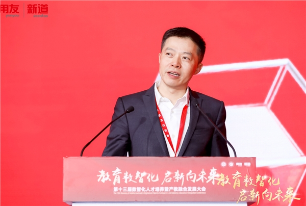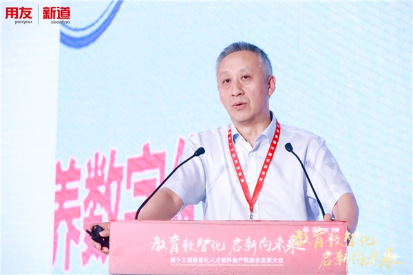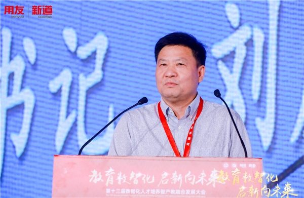 新道科技股份有限公司副總裁賈大明以“教育數(shù)智化啟新向未來(lái)”為題進(jìn)行演講。他表示,數(shù)字中國(guó)已經(jīng)走深走實(shí),數(shù)字教育正在開(kāi)啟新程,教育數(shù)智化將走向數(shù)智化、融合化、協(xié)作化、國(guó)際化。突破路徑依賴,跳出教育看教育數(shù)智化,立足全局看教育數(shù)智化。教育數(shù)智化的核心是教學(xué),教育數(shù)智化不是單純的智慧校園,不是技術(shù)與教育的簡(jiǎn)單疊加,而是對(duì)教育深度的變革重塑。賈大明介紹,新道科技打造了數(shù)智工科、數(shù)智財(cái)經(jīng)、數(shù)智財(cái)經(jīng)、新雙創(chuàng)四大數(shù)智教育體系以及DBE Cloud 數(shù)智實(shí)踐平臺(tái),AIE數(shù)智商業(yè)綜合實(shí)踐平臺(tái),新道教育元宇宙實(shí)驗(yàn)實(shí)訓(xùn)平臺(tái),青椒課堂平臺(tái),S+ Cloud認(rèn)知實(shí)踐平臺(tái)五大產(chǎn)品。新道科技以數(shù)字產(chǎn)業(yè)領(lǐng)跑教育數(shù)智化,從內(nèi)容層、應(yīng)用層、平臺(tái)層、環(huán)境層四個(gè)方面為院校提供校級(jí)數(shù)智化教學(xué)改革方案。他表示,教育數(shù)智化需要攜手產(chǎn)業(yè),共同完成范式躍遷;并擁抱頭部企業(yè),立足數(shù)字中國(guó),服務(wù)產(chǎn)業(yè)升級(jí),共創(chuàng)數(shù)字教育。