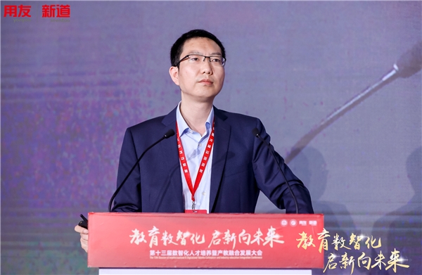 新道科技股份有限公司董事長(zhǎng)兼總裁陳強(qiáng)兵在致辭中表示,中國(guó)經(jīng)濟(jì)已經(jīng)從傳統(tǒng)經(jīng)濟(jì)轉(zhuǎn)型為數(shù)字經(jīng)濟(jì)、企業(yè)已經(jīng)從傳統(tǒng)企業(yè)轉(zhuǎn)型為數(shù)字企業(yè)、教育已經(jīng)從傳統(tǒng)教育轉(zhuǎn)型為數(shù)字教育,將會(huì)需要更多的數(shù)智化人才、新型人才。35年來(lái),用友一直關(guān)注并支持教育事業(yè)的發(fā)展,并成立專業(yè)子公司新道科技,服務(wù)中國(guó)教育事業(yè)。新道科技累計(jì)服務(wù)4818所中高本院校,累計(jì)合作培養(yǎng)學(xué)生與學(xué)員650萬(wàn)。他表示,本次大會(huì)由一場(chǎng)主題大會(huì)、三個(gè)篇章、三家知名企業(yè)參訪,四場(chǎng)平行分論、一場(chǎng)沙龍、幾十位業(yè)界大咖、專家演講壇構(gòu)成,希望通過(guò)兩天的活動(dòng)與交流,能讓參會(huì)嘉賓有所啟發(fā)和收獲,并與全國(guó)院校攜手共同推進(jìn)教育數(shù)字化,啟新向未來(lái)。
