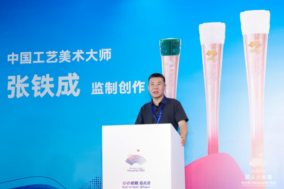 隨后,由中國玉雕第 一人,中國工藝美術(shù)大師張鐵成詳細(xì)介紹了《薪火火炬尊》的創(chuàng)作過程,解讀了中國玉石文化背后的內(nèi)涵。會(huì)上他還講到,《薪火火炬尊》是繼2008年奧運(yùn)徽寶、2022年冬奧徽寶后的我國又一國際體育盛會(huì)紀(jì)念作品,一脈相承,是他的圓滿之作,具有很高的珍藏價(jià)值。