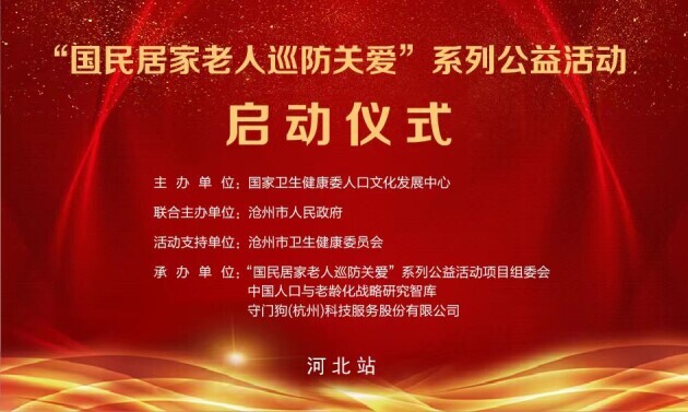 2023年7月29日由國家衛(wèi)生健康委人口文化發(fā)展中心主辦;滄州市人民政 府聯(lián)合主辦;“國民居家老人巡防關(guān)愛系列公益活動組委會、”中國人口與老齡化戰(zhàn)略研究智庫與守門狗(杭州)科技服務(wù)股份有限公司共同承辦的“國民居家老人巡訪關(guān)愛”系列公益活動(河北站)啟動儀式活動,在滄州市阿爾卡迪亞酒店舉行。