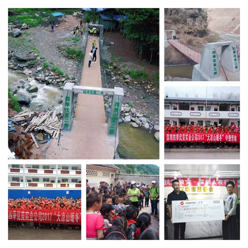 四季優(yōu)美投入27萬(wàn)元在昭覺(jué)縣捐建第四座上學(xué)橋——特布洛鄉(xiāng)摩鋪村四季優(yōu)美橋,以解決村里孩子雨季上學(xué)難、村民出行難的問(wèn)題。