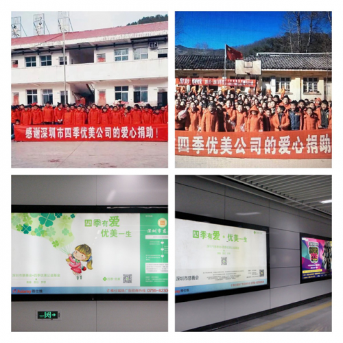 四季優(yōu)美積極響應(yīng)深圳市發(fā)起的“四川九寨溝地震災(zāi)后捐助”活動(dòng),率先捐資30萬(wàn)元用于災(zāi)后教育工作。