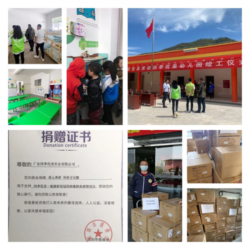 賑災(zāi)捐款,參與健康類(lèi)公益救助項(xiàng)目,捐建校舍、橋梁,改造校園設(shè)施等,檢驗(yàn)著四季優(yōu)美投身公益活動(dòng)的成色。深圳關(guān)愛(ài)行動(dòng)“十佳愛(ài)心企業(yè)”提名獎(jiǎng)的殊榮,是對(duì)四季優(yōu)美長(zhǎng)期堅(jiān)持公益的肯定。而逐年推進(jìn)的“暖冬”活動(dòng)及“一加一”資助行動(dòng),更已成為具有四季優(yōu)美文化內(nèi)涵的公益品牌。