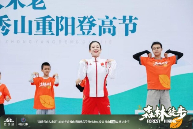 上午9點(diǎn)半,幾百名森林徒步健兒集結(jié)青秀山西門,隨后,在柏樂口腔隆重特邀有著健美操一姐之稱,獲得過九個(gè)世界冠軍的黃晉萱女士親臨現(xiàn)場(chǎng)下。整個(gè)森林徒步的熱身現(xiàn)場(chǎng)氛圍十分活躍,8名徒步愛好者爭(zhēng)相上臺(tái),在世界冠軍的帶領(lǐng)下同臺(tái)展示了專業(yè)活力的熱身運(yùn)動(dòng)。