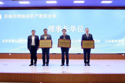 11月24日,由山東省教育廳、濟(jì)南市教育局、濟(jì)南市工業(yè)和信息化局、濟(jì)南市文化和旅游局、濟(jì)南市長清區(qū)人民政 府共同指導(dǎo),濟(jì)南長清大學(xué)城管理委員會(huì)、山東職業(yè)學(xué)院、北京安博大成教育科技有限責(zé)任公司、濟(jì)南西城軟件園服務(wù)有限公司等單位牽頭成立“濟(jì)南市網(wǎng)絡(luò)視聽產(chǎn)教聯(lián)合體”。