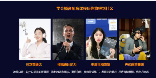 學(xué)會(huì)播音配音課程后,你將會(huì)有哪些收獲呢?首先,你將糾正普通話,讓你的發(fā)音更加準(zhǔn)確,口音更加標(biāo)準(zhǔn)。其次,你的表達(dá)能力將得到顯著提高,無論是口語表達(dá)還是情感傳達(dá),都將更加流暢和生動(dòng)。此外,你將掌握電商主播帶貨的技巧,通過聲音營銷,讓產(chǎn)品推廣更加高效。同時(shí),你也將具備聲優(yōu)配音的兼職能力,用你的聲音創(chuàng)造更多的價(jià)值。