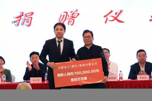 會上,天陽親子(浙江)集團有限公司,向瑞安市留學人員和家屬聯(lián)誼會捐贈人民幣10萬元。