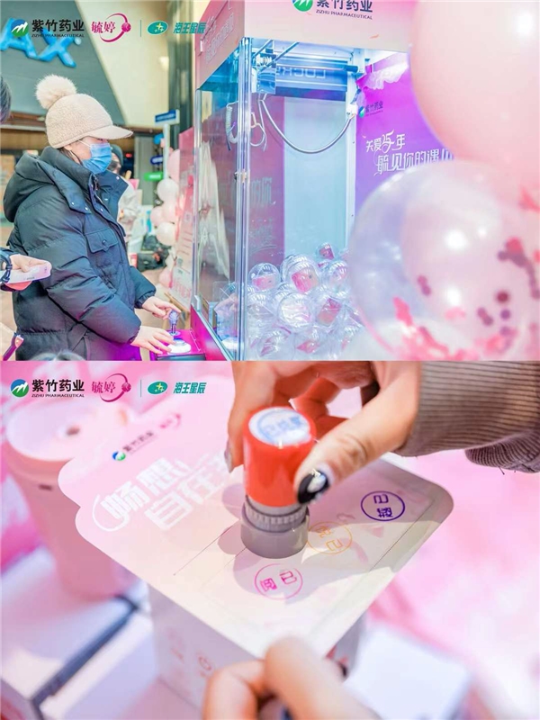 “關(guān)愛25年,毓見你的遇見”快閃活動(dòng)現(xiàn)場(chǎng)設(shè)置了三大打卡活動(dòng)區(qū):在“毓見閱己的你”活動(dòng)區(qū),在場(chǎng)的用戶們?cè)谂恿B(tài)度墻上,通過選擇最適合自己當(dāng)下狀態(tài)的那句話,在閱讀中即可遇見當(dāng)下的自己。在“毓見悅己的你”活動(dòng)區(qū),參與者們?cè)凇靶疫\(yùn)娃娃機(jī)”前興高采烈地進(jìn)行游戲,不僅收獲了可愛的毛絨玩具,還收獲了一份專屬快樂。在“毓見越己的你”活動(dòng)區(qū),“開心消消樂”給人們帶來了一點(diǎn)小小的挑戰(zhàn),與此同時(shí)也帶來了勇氣與力量,讓他們?cè)谟螒虻倪^程中不斷超越自己、突破自己,喚起了每個(gè)人對(duì)掌控美好生活的信心及動(dòng)力。在每面活動(dòng)墻體的背面還有《紫竹藥業(yè) 毓婷X女性成長(zhǎng)與健康白皮書》精彩內(nèi)容,引導(dǎo)大家閱讀觀看。